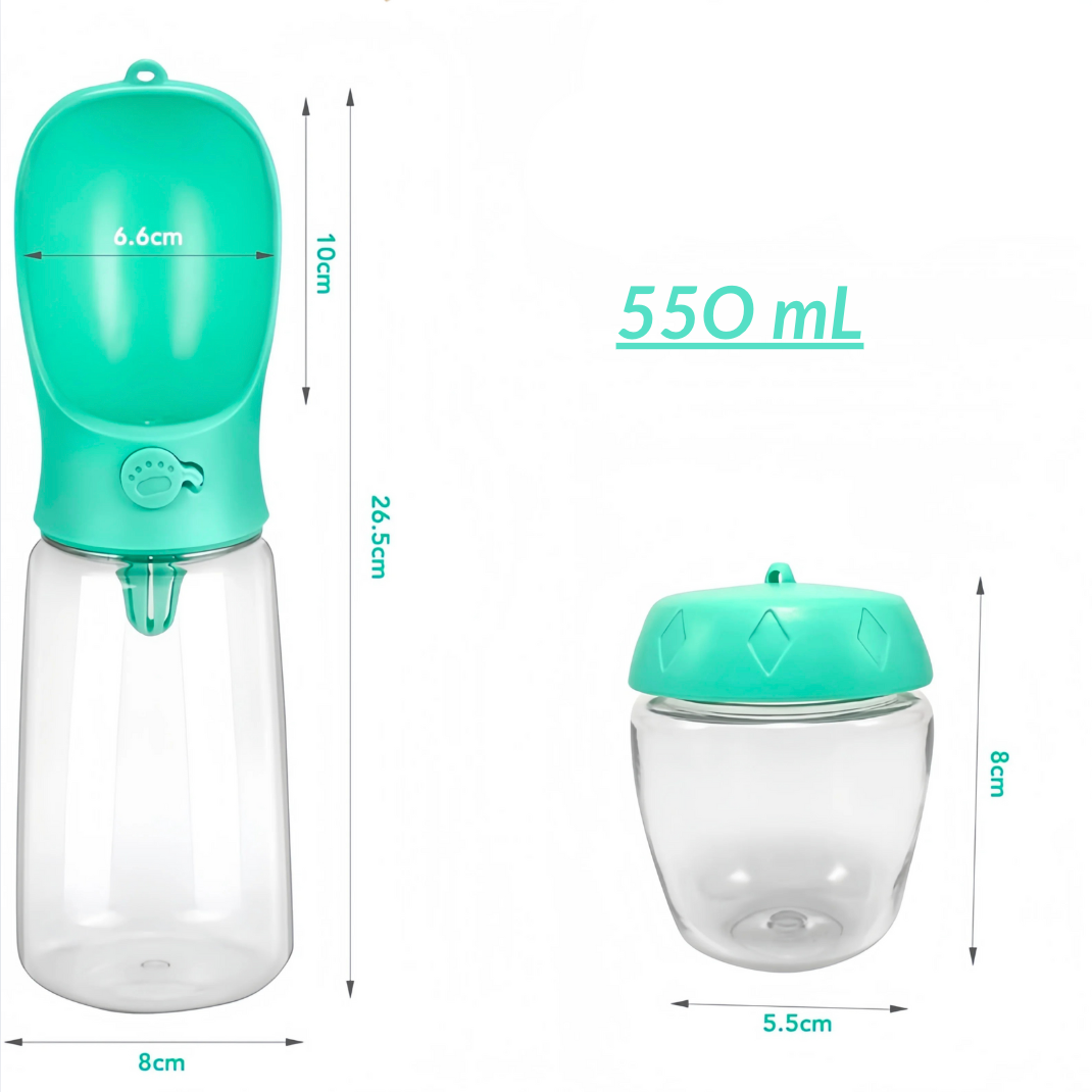 Avec la gourde 2-en-1 pour chien , vous avez toujours à portée de main de l'eau fraîche et des croquettes.